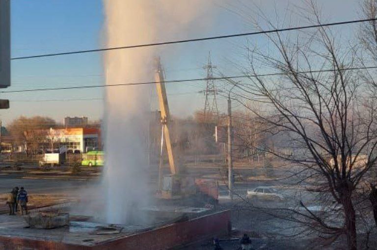 Сегодня в Оренбурге на улице Терешковой бил 10-метровый фонтан горячей воды.