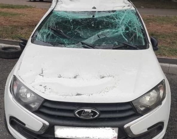 Произошло столкновение, в результате которого автомобиль Granta опрокинулся на проезжей части.