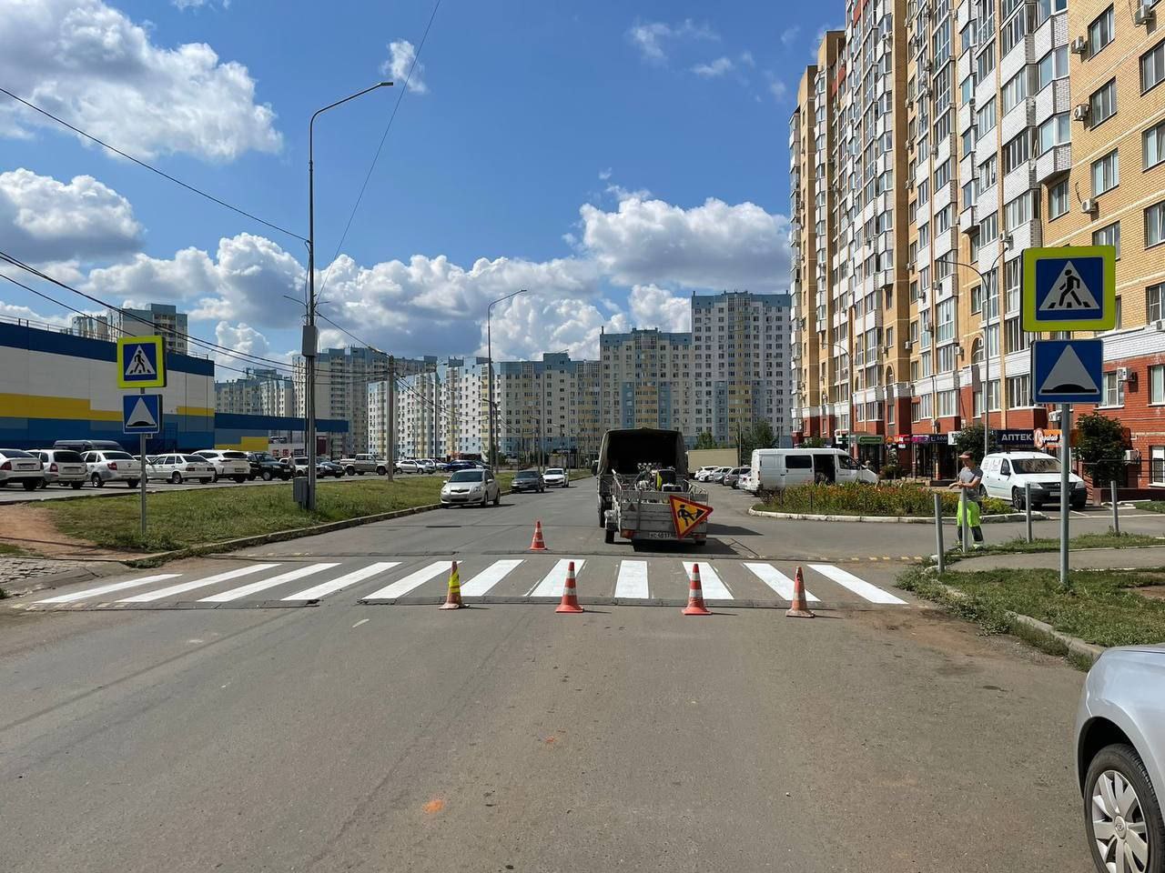 По поручению временно исполняющего обязанности главы города Альберта Юмадилова после встречи с жителями 19-го микрорайона установлены современные наземные пешеходные переходы.