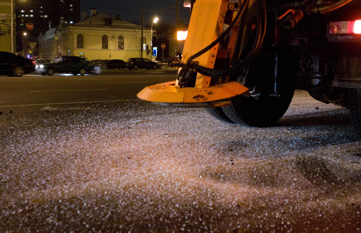 По поручению главы Оренбурга три комбинированные дорожные машины предприятий «Комсервис» и «БиОЗ» выехали на просыпку солью виадуков, путепроводов, мостов и опасных участков областного центра.