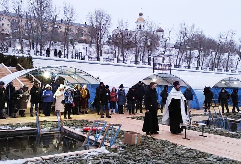 Сегодня утром обряд освящения воды совершил настоятель храма Введения во храм Пресвятой Богородицы, протоиерей Дмитрий Сурай.