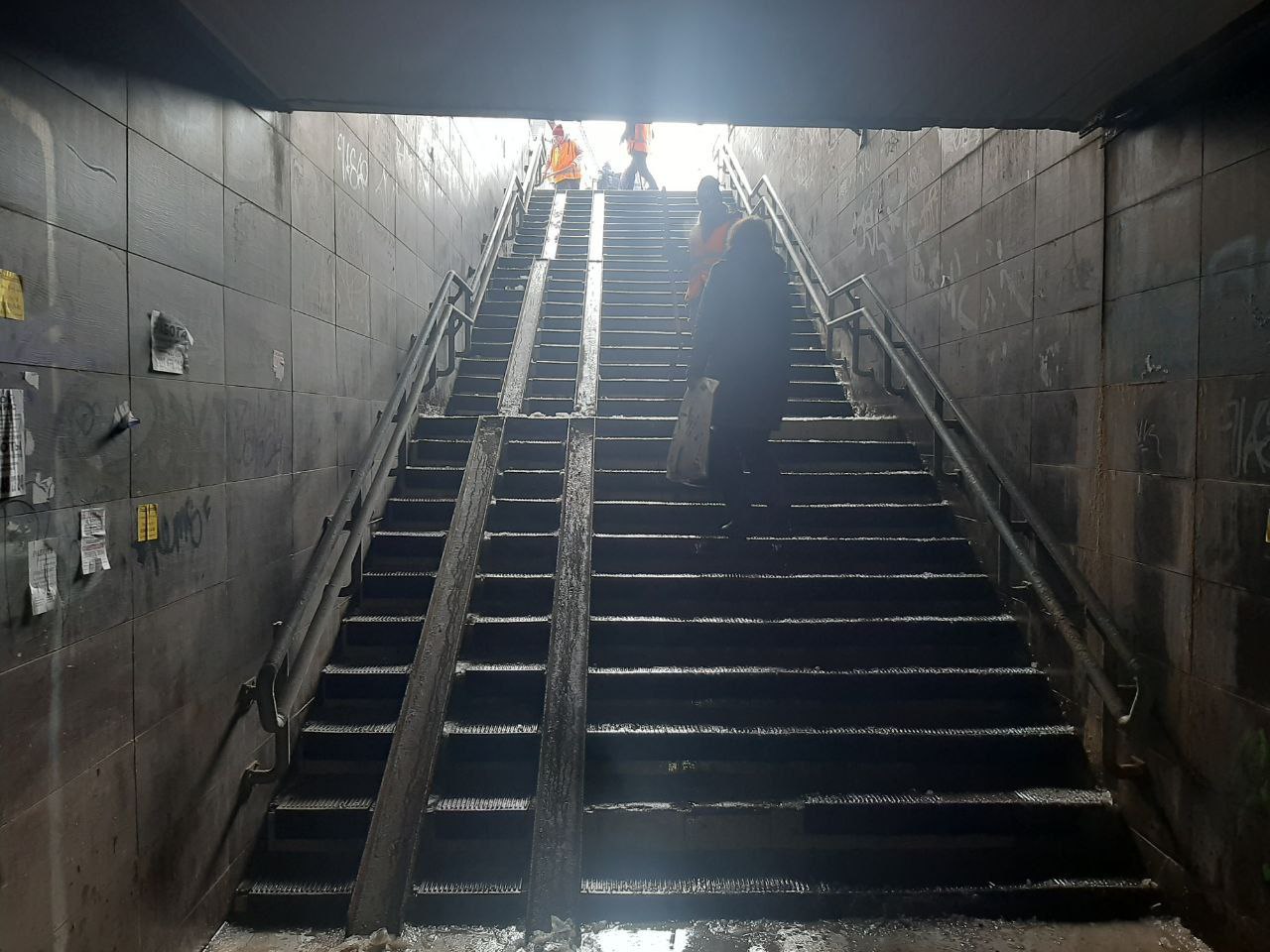 25 марта рабочие муниципального коммунального предприятия «БиОз» расчистили подземный пешеходный переход на проспекте Победы в районе остановки «ОГУ».