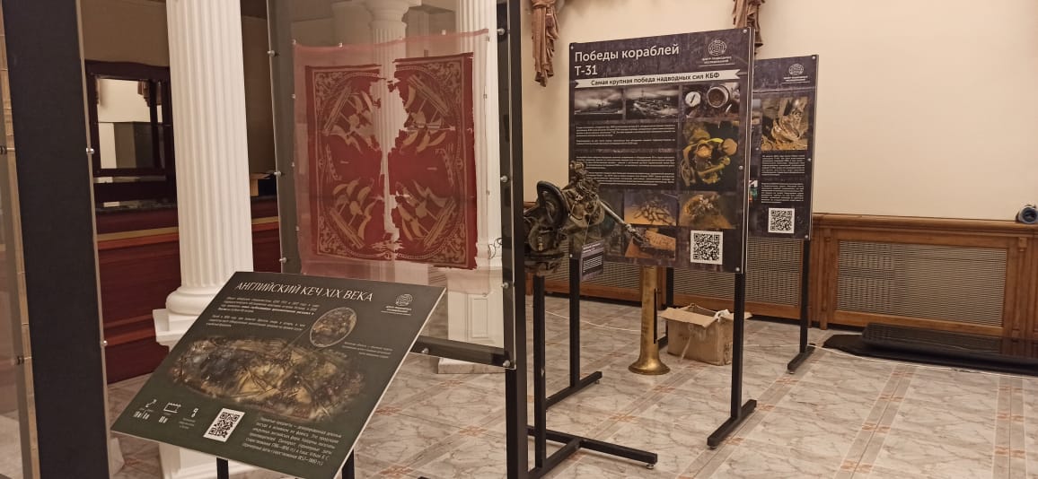 Экспозиция, собранная по решению министра обороны РФ и президента Русского географического общества Сергея Шойгу, разделена на пять тематических блоков. Один посвящен достижениям 19 путешественников и ученых, сделавшим важные открытия в области картографии, биологии, геологии. В их числе Николай Пржевальский, Эрнст Гофман, Эдуард Толль, Густав Радде. Другой блок повествует о судьбах жен полководцев и флотоводцев. Посетители выставки узнают, к примеру, что супруга маршала Еременко во время войны была в госпитале санитаркой, а жена маршала Лосика на фронте работала в редакции армейской газеты. Еще один блок «Путь к звездам» посвящен первому полету человека в космос. Четвертый блок повествует о находках Центра подводных исследований РГО, который был создан в 2015 году.