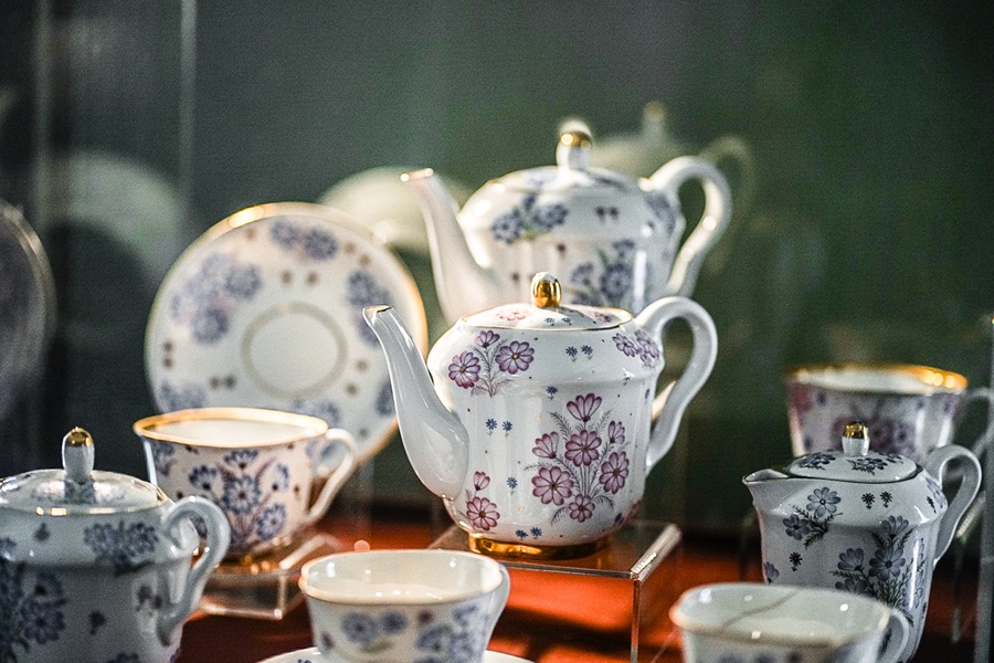В экспозиции представлены чайные и кофейные сервизы, а также пары самых разнообразных форм: большой и малый колокол, тюльпан, бутон, груша, лотос и др. Среди этого разнообразия встречаются просто уникальные: «подписные», от авторов художественной росписи, тончайшие белоснежные из костяного фарфора, эксклюзивные — не попавшие в тираж ввиду сложности их росписи.