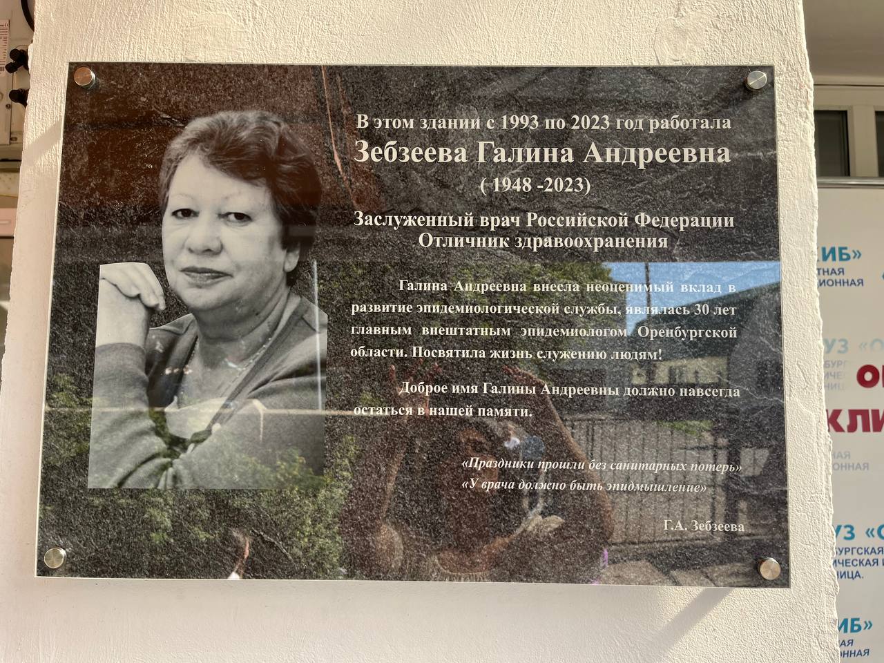 На корпусе областной клинической инфекционной больницы в Оренбурге появилась доска памяти врачу-эпидемиологу Галине Зебзеевой. В церемонии открытия приняла участие вице-губернатор — министр здравоохранения области Татьяна Савинова.