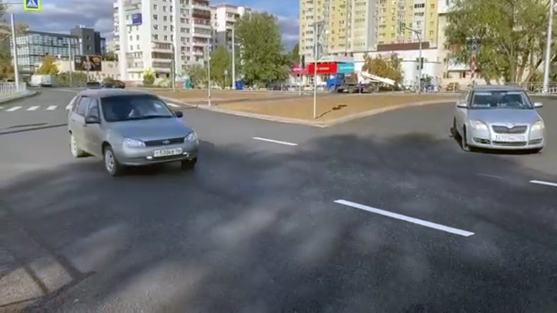 В областном центре открыли движение по кольцу на пересечении улицы Рокоссовского и проспекта Победы. Ночью на кольцевой развязке нанесли дорожную разметку.