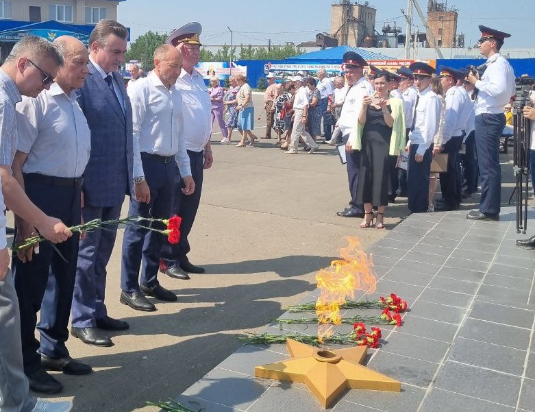 Перед трибунами прошёл парадный расчёт сотрудников службы. Присутствующие почтили память коллег, погибших при исполнении служебного долга, и возложили цветы к мемориалу.
