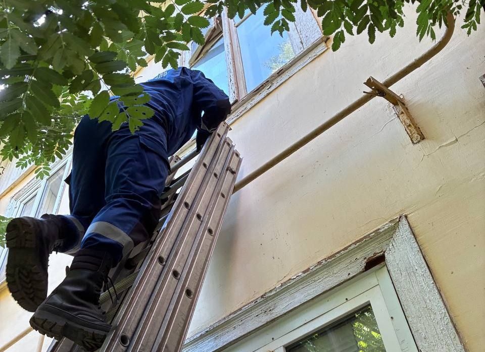 Сотрудники городской аварийно-спасательной службы с помощью лестницы проникли в квартиру через окно.