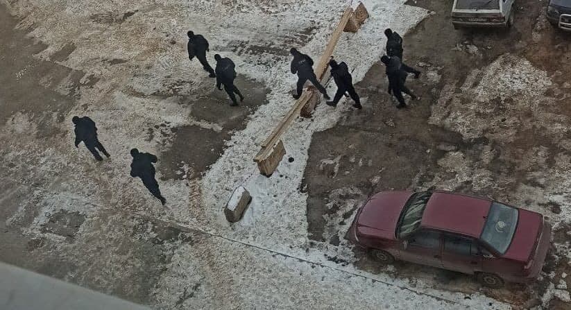 В социальных сетях появилась видеозапись с территории стройки жилого квартала Дубки. На запись попала группа бойцов ОМОН в униформе.