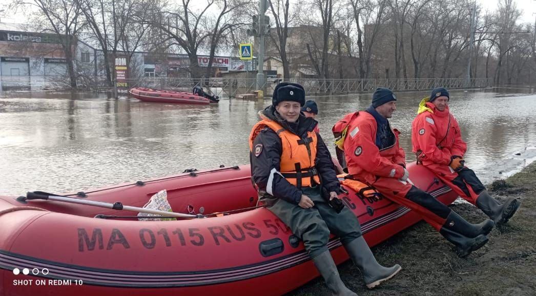 Полицейские Руслан Алиев и Рифат Темиргалиев патрулировали территорию затопленного паводковыми водами посёлка Заречный.