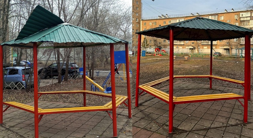 Один из жителей сообщил, что во дворе дома по улице Салмышской, 16/1 на детской площадке повреждён металлический лист беседки, который мог представлять опасность при сильном ветре. Кровельный лист был оперативно закреплён.