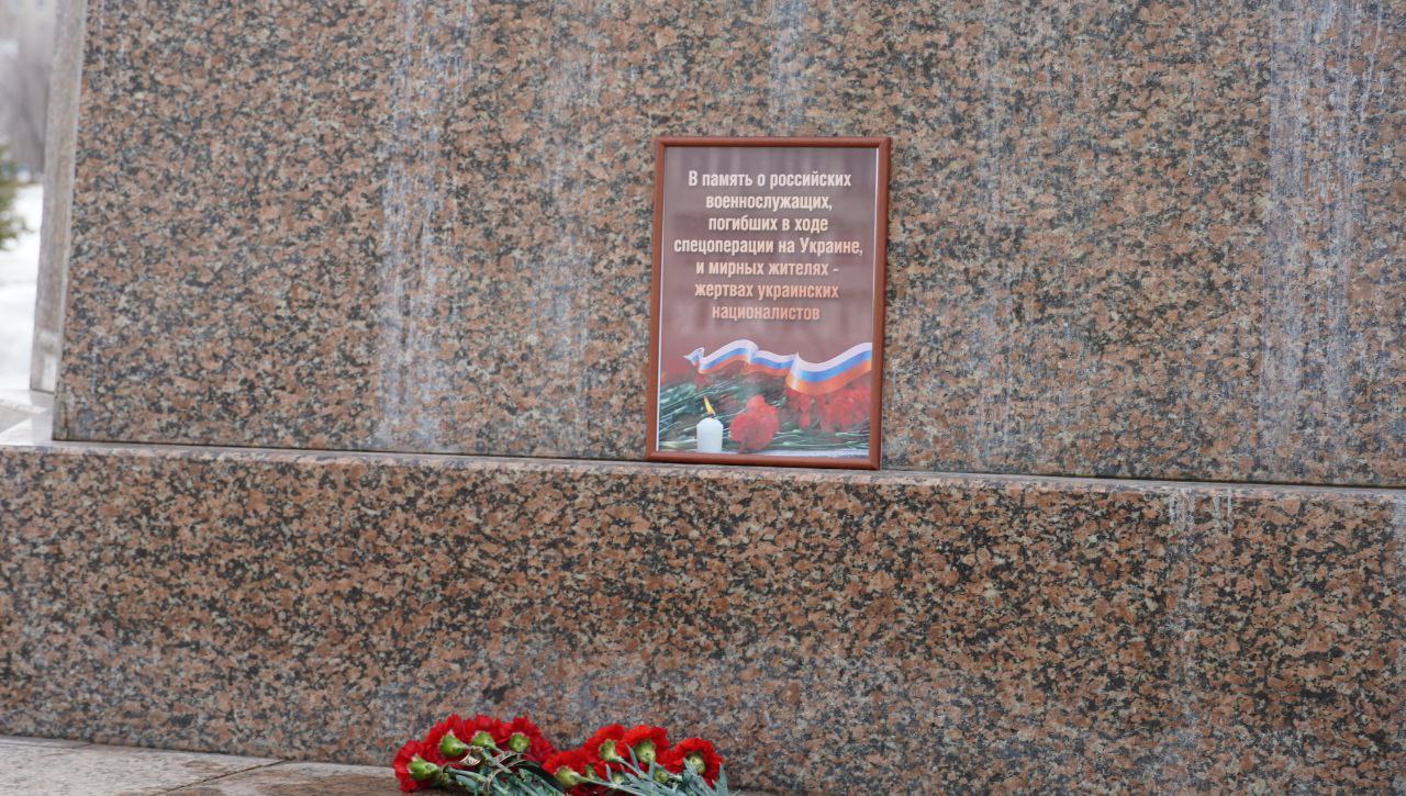 В Оренбурге появился временный мемориал в память о российских военнослужащих, погибших в ходе спецоперации на Украине и мирных жителях — жертвах украинских националистов.