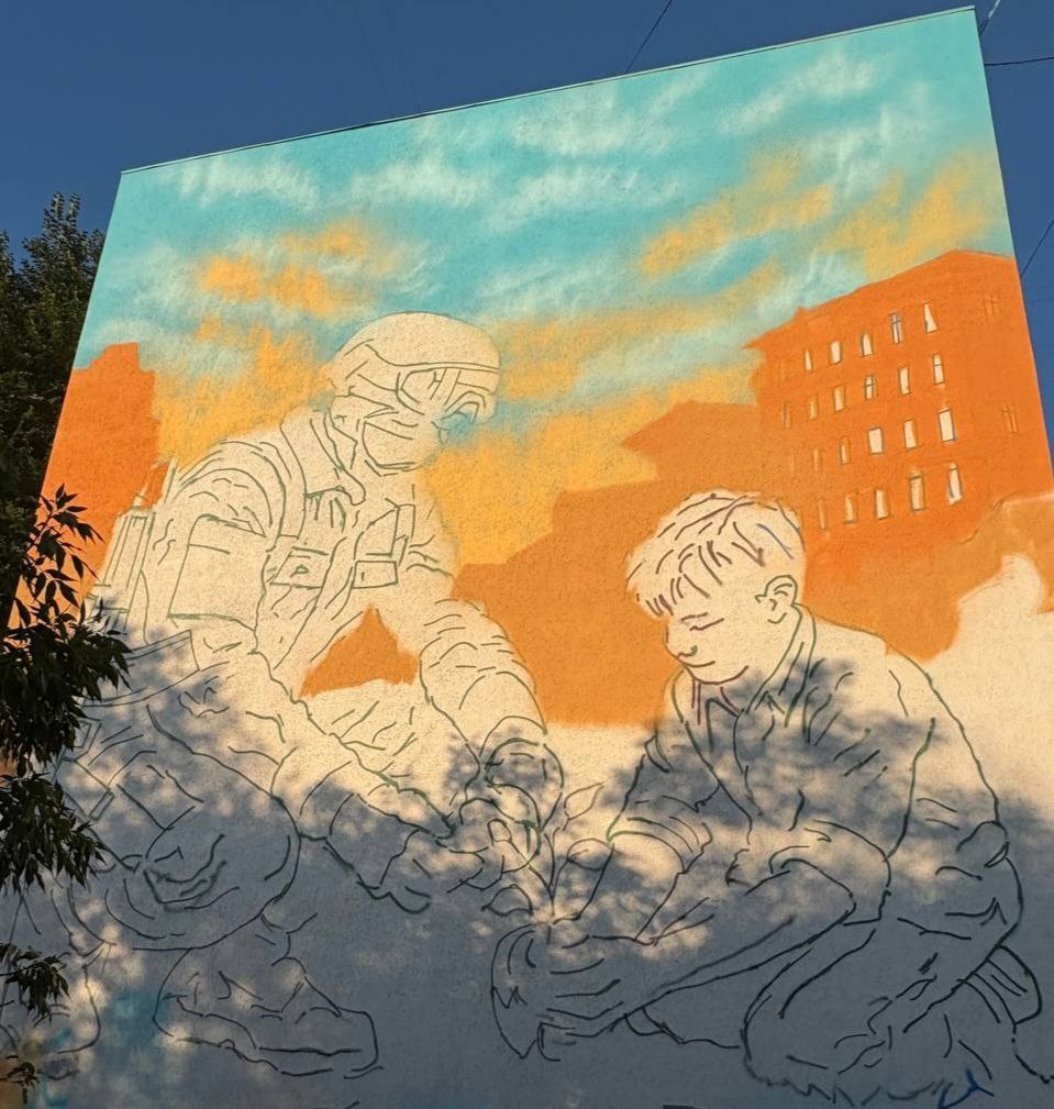 — Моя работа символизирует передачу ценностей от одного поколения к другому. Вместе они сажают молодой росток дерева посреди улицы освобожденного города – символ мира и продолжения жизни. Российский солдат, защищающий Родину, становится проводником будущего и вместе с ребенком в буквальном и переносном смысле закладывает «корни будущего», — рассказал Андрей Корниенко, — отметил автор.