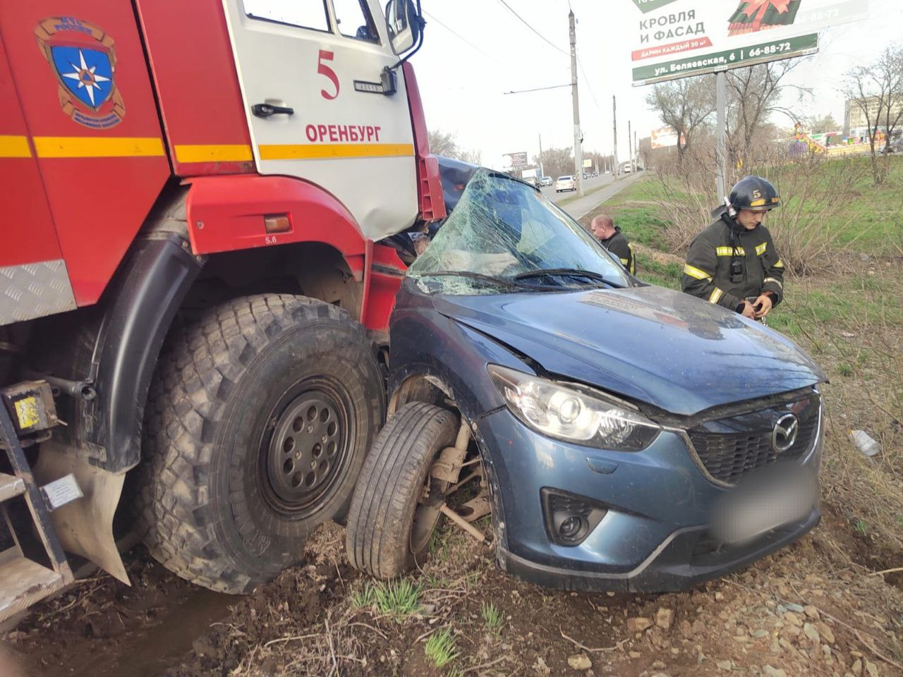 Автомобиль «Камаз» спецтранспорта МЧС двигался с включёнными спецсигналами без звуковой сигнализации в сторону села Ивановка и протаранил автомобиля «Мазда».