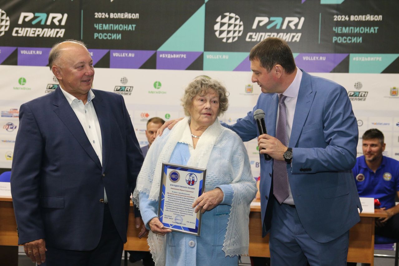 Кульминацией встречи стала презентация оренбургского пухового платка с эксклюзивным дизайном, посвященным 100-летию отечественного волейбола. Платок преподнесли ветерану спорта, заслуженному тренеру РСФСР Марии Королевой. Ветеранам-волейболистам были вручены ценные подарки и благодарственные письма от Федерации волейбола области.