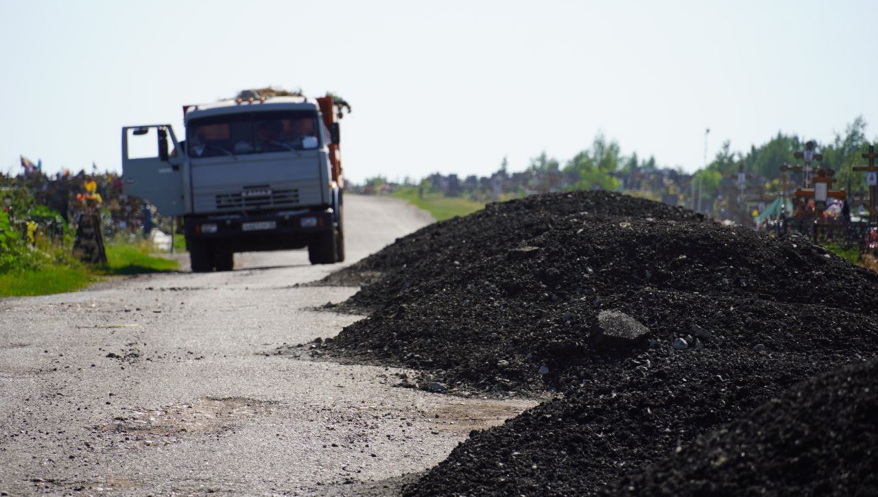 Грунтовую дорогу на кладбищенском комплексе «Степной» протяженностью 2,2 километра отсыпают асфальтовым срезом. Материал получают при снятии дорожного полотна на ремонтируемых городских магистралях.