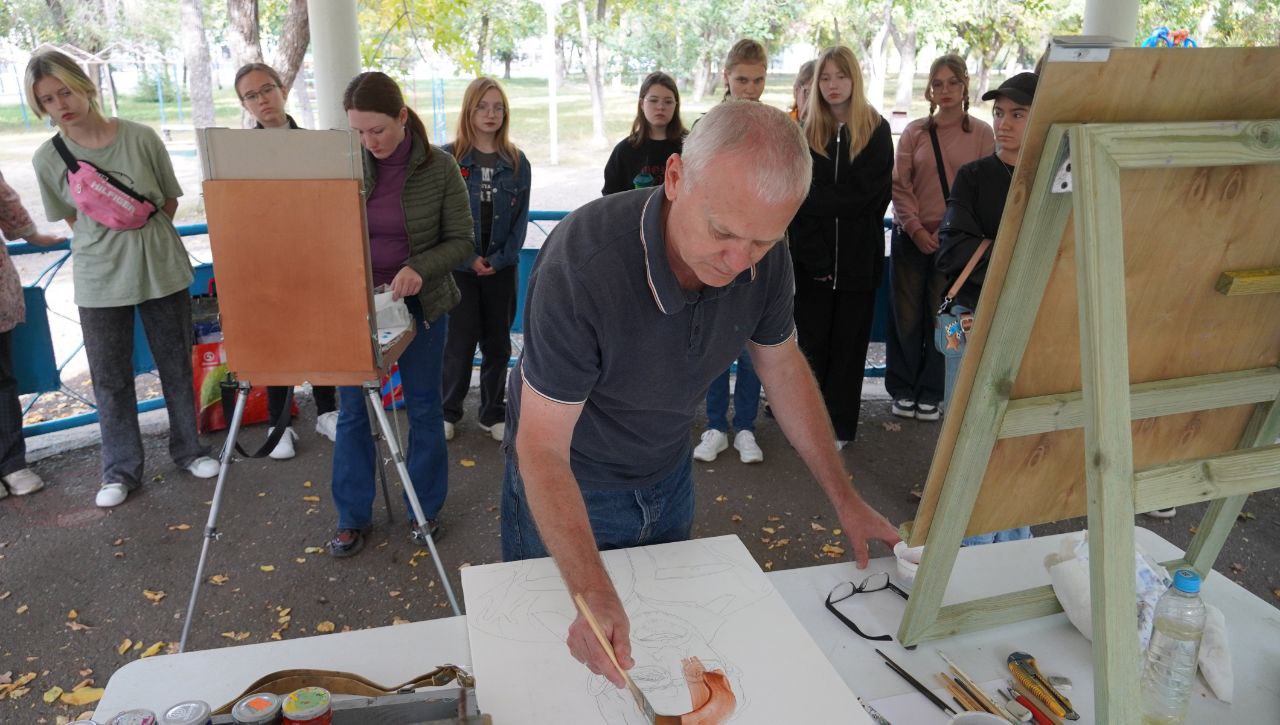 В четвёртый пленэрный день член Союза художников России Ильнур Сиразиев провёл для учащихся оренбургских детских школ искусств мастер-класс «Портрет акрилом».