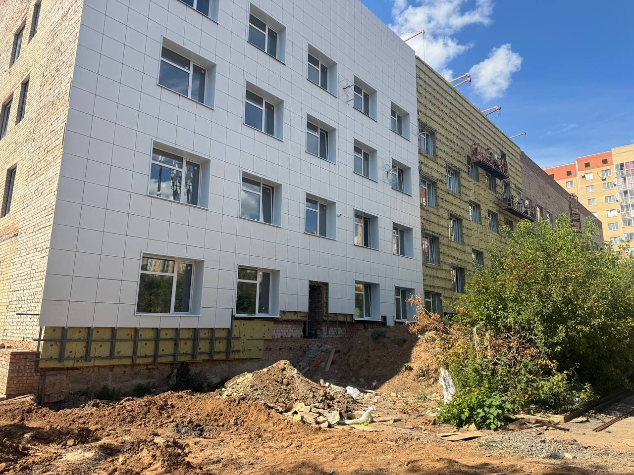 Ремонтные работы в поликлинике начались в августе 2023 года. Уже отремонтирована кровля, заменены окна, завершена черновая отделка четвёртого этажа, ведутся отделочные работы на третьем. Также подрядная организация приступила к монтажу фасада.