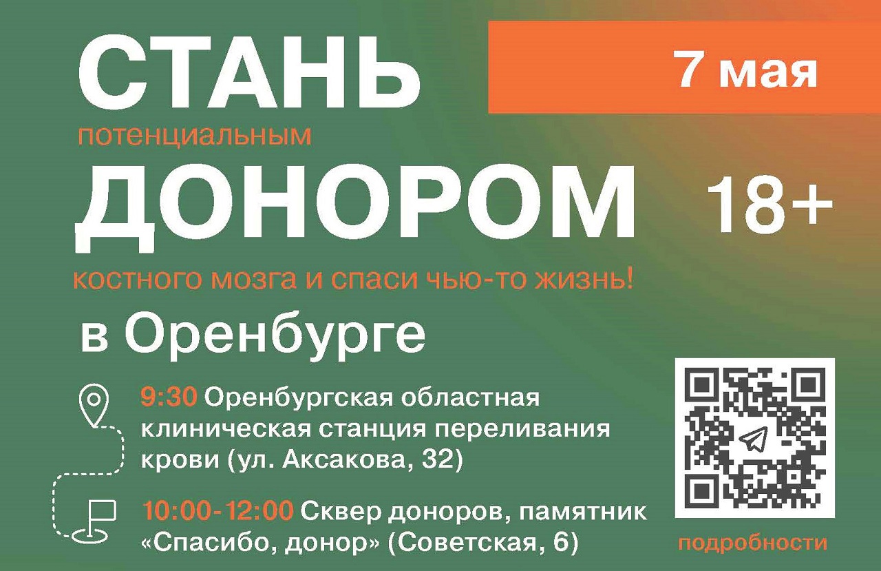 Чтобы поддержать проект, не нужно бежать или проходить регистрацию. Достаточно прийти 7 мая в Сквер доноров, где будет работать мобильная станция переливания крови. Любой желающий старше 18 лет при предъявлении паспорта и СНИЛС может сдать кровь и вступить в регистр доноров костного мозга. Станция будет работать с 10 до 12 часов.