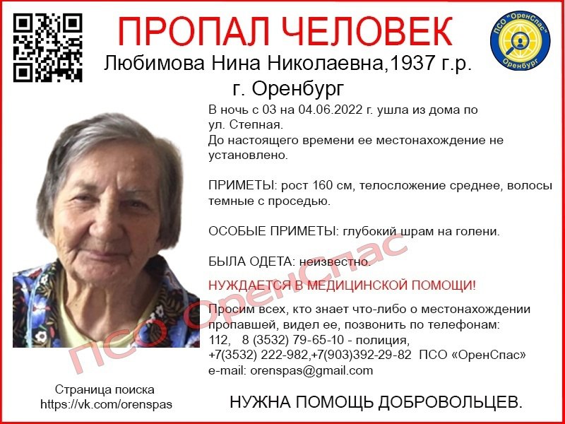 Женщину разыскивают родственники, волонтёры «ОренСпас» и полиция.