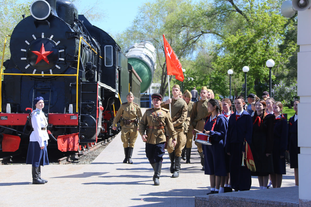 В оренбургском парке «Салют, Победа!» прошла масштабная арт-реконструкция — майский вальс под открытым небом.