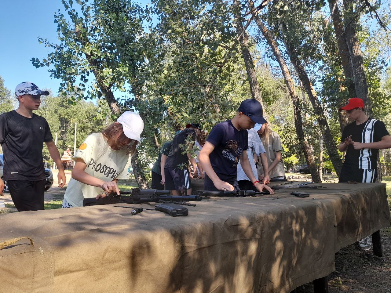 Юнармейцы тренируются в разборке-сборке макета автомата АК, стрельбе из пневматической винтовки, сдают силовую подготовку. В программе запланирован выезд в в/ч 33860 города Оренбурга для отработки навыков преодоления полосы препятствий.