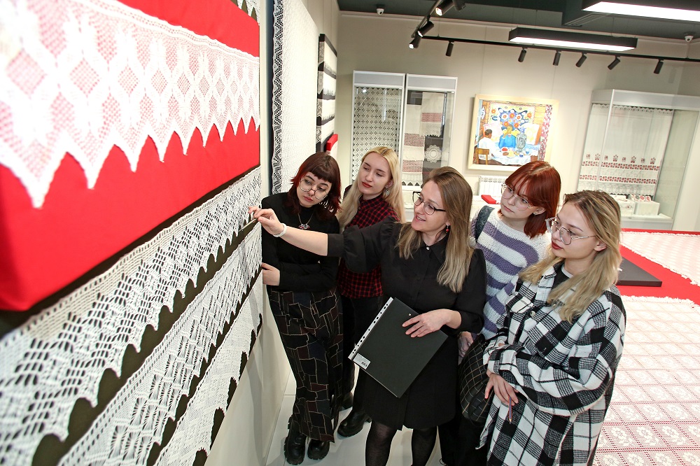 С шедеврами женского рукоделия знакомятся будущие работники культуры – студенты Оренбургского художественного колледжа. С пользой провели здесь время подружки Анастасия Коняхина и Дарья Тыщенко. Обе учатся на 4-м курсе отделения декоративно-прикладного искусства по направлению «художественное кружевоплетение».
