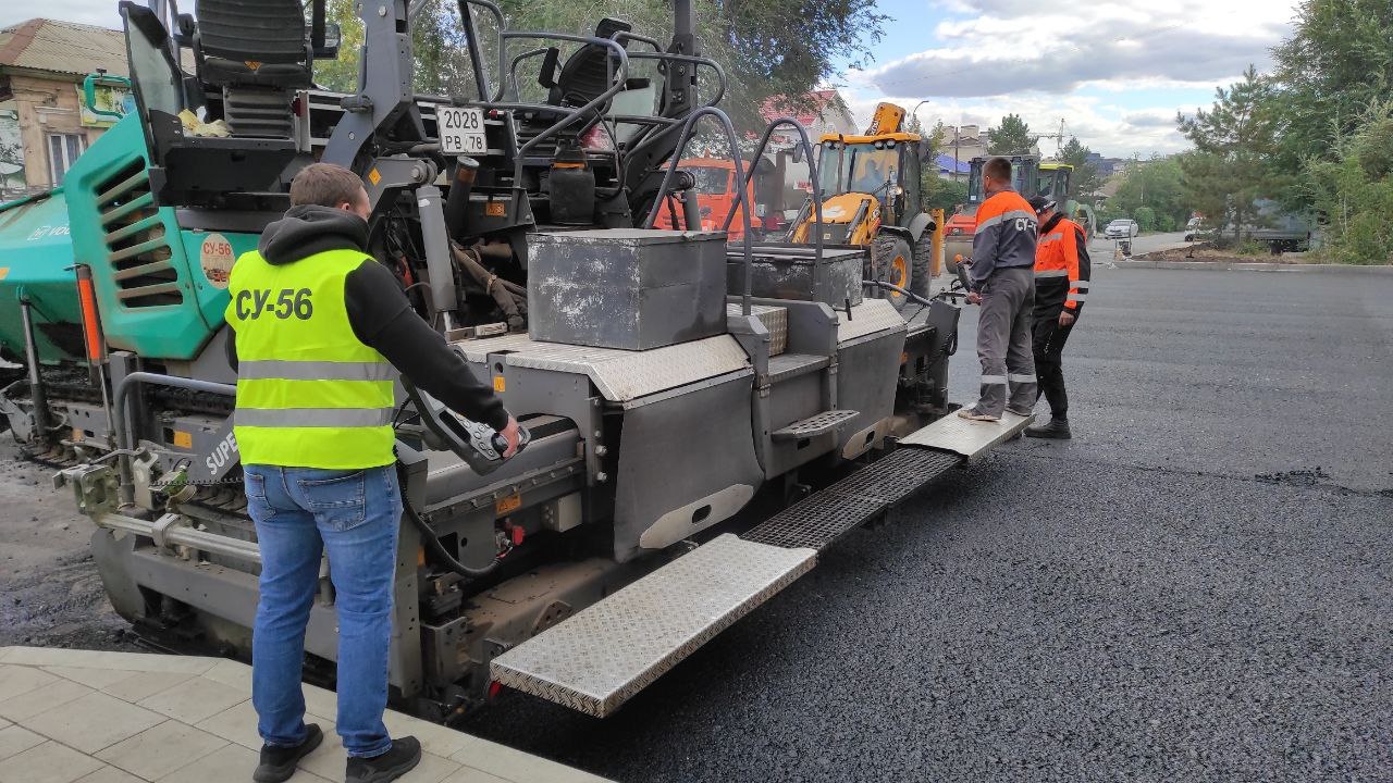 Накануне рабочие приступили к укладке верхнего слоя асфальта.