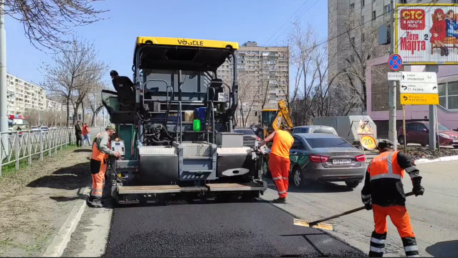 В Оренбурге идёт ремонт на улице Чкалова. Работу выполняет строительное управление «СУ-56».