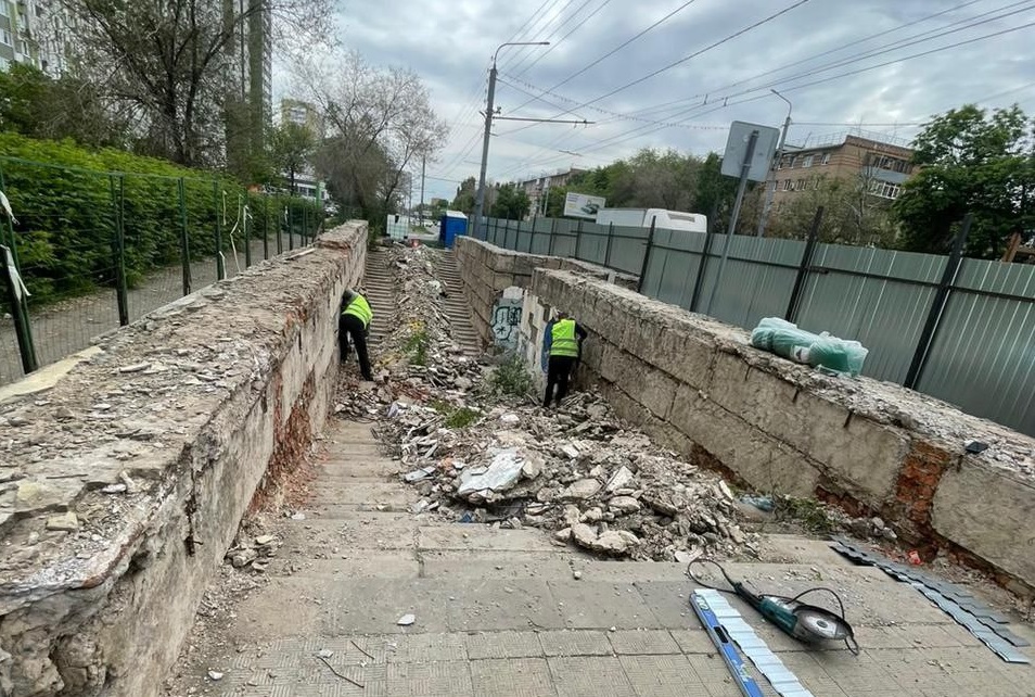 С 15 мая в Оренбурге ремонтируют пешеходный переход в районе остановки «Пролетарская». Объект несколько лет стоял законсервированным.