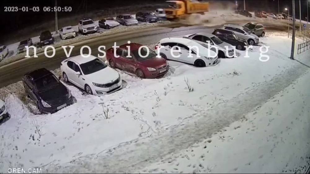 3 января около семи часов утра на улице Хусаиновых областного центра гружёный снегом самосвал снёс несколько припаркованных легковых автомобилей.