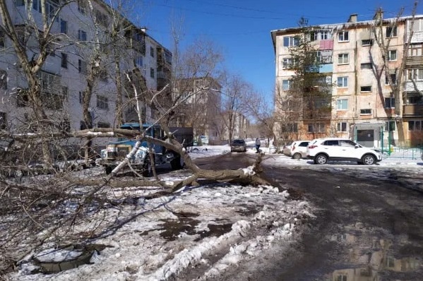 Повреждения кровли устранены на зданиях, расположенных на проспекте Победы, 75, ул. Советской, 58, проспекте Парковом, 9. Упавшие деревья распилены и убраны на улицах Полигонной, 59, Советской, 58, Аксакова, 5.