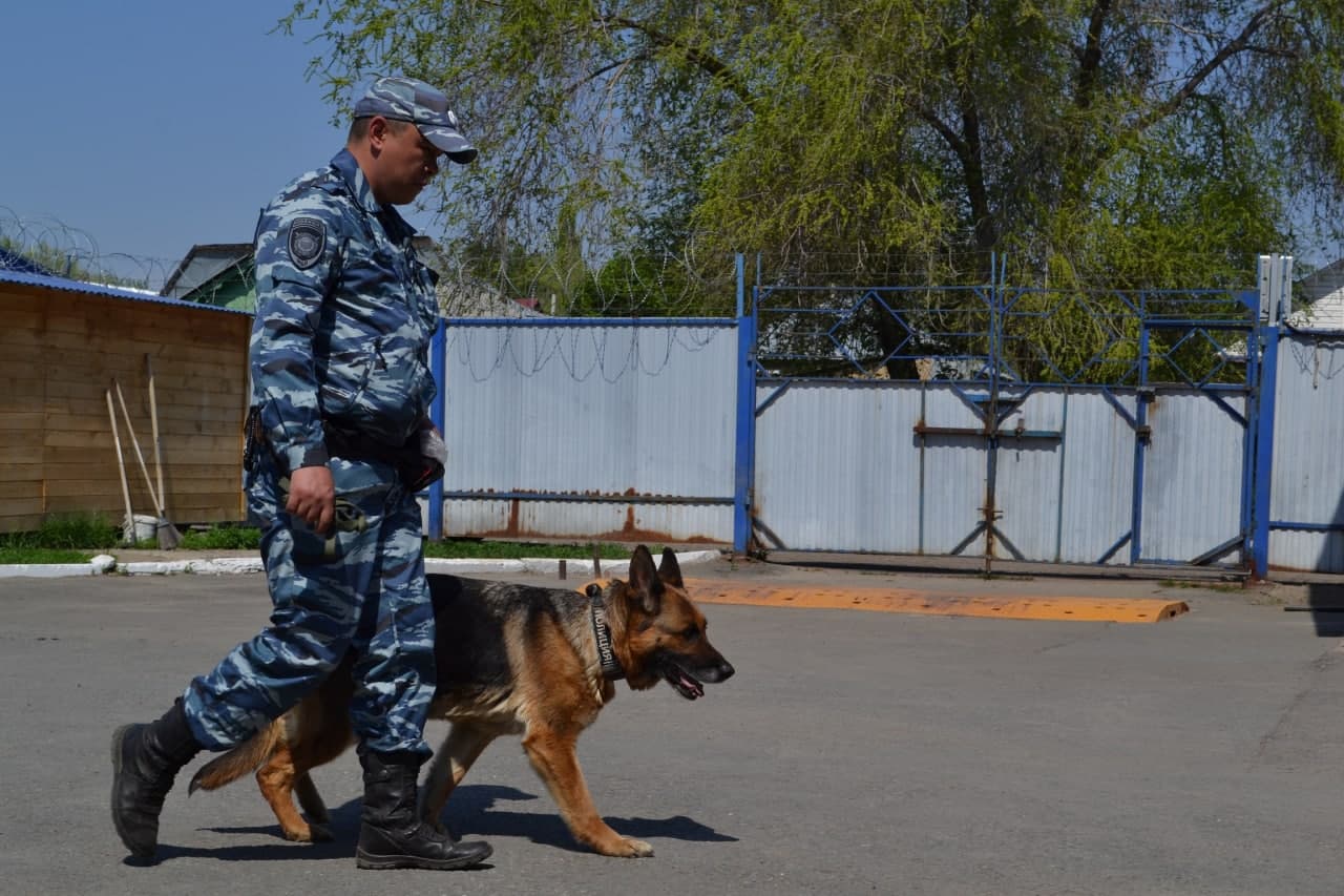 Кинолог с помощью овчарки установил подозреваемого в воровстве.