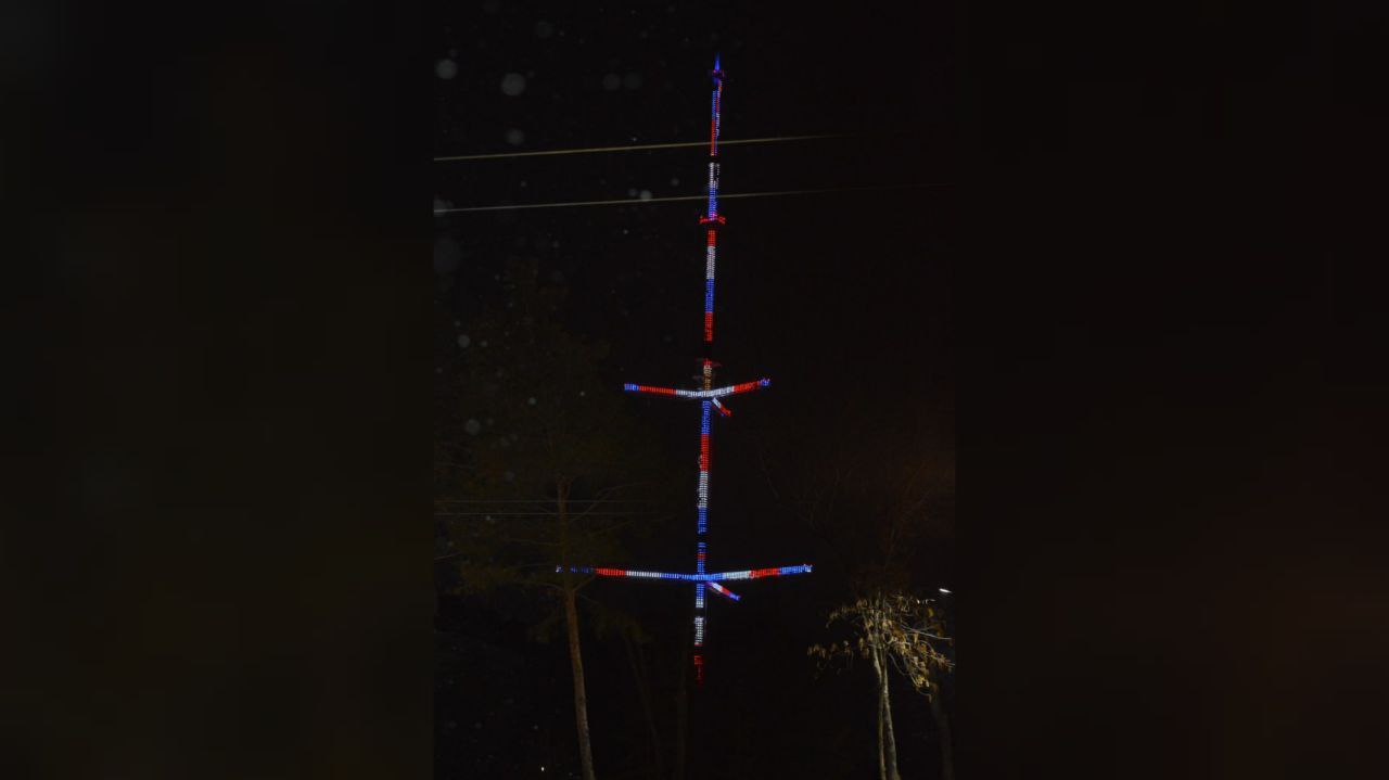 Жители областного центра делились в социальных сети снимками и видео с репетиции шоу. На фотографиях видно, что телемачта подсвечена в цвета российского триколора. Различные цвета подсветки сменяли друг друга.