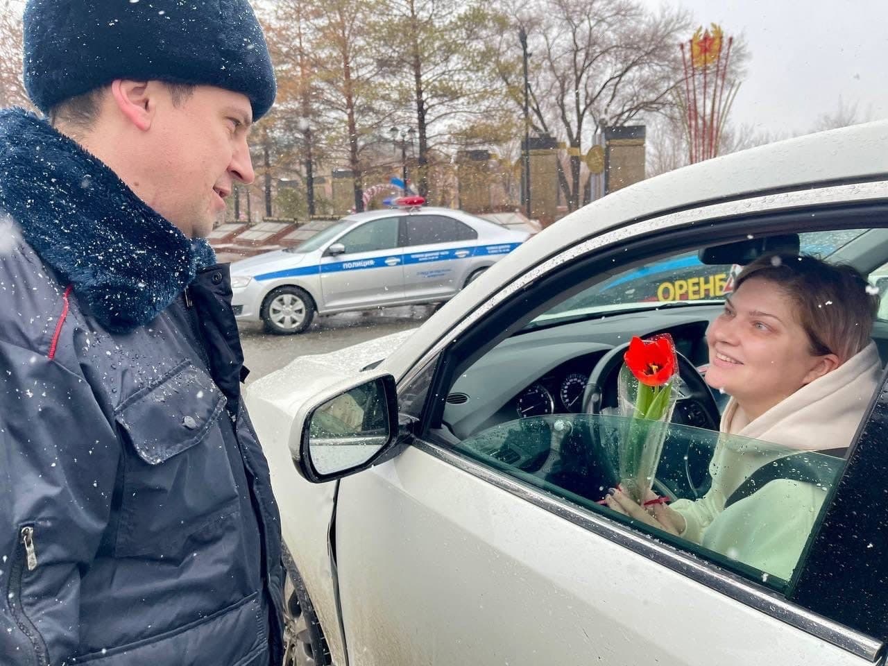 Накануне Международного женского дня сотрудники Госавтоинспекции Оренбурга совместно с членом Общественного совета при МУ МВД России «Оренбургское» Алексеем Шипиловым и представителем автошколы «Оренбург» приняли участие во Всероссийской акции «Цветы для автоледи».