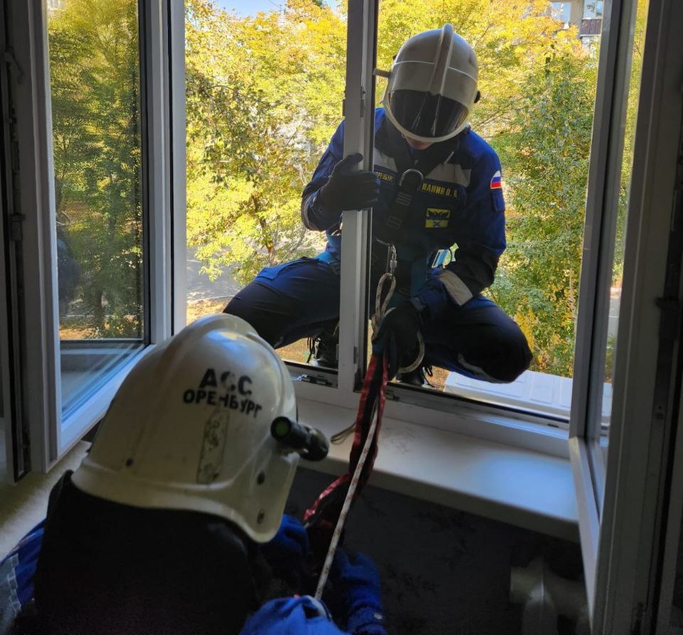 Сотрудники городской аварийно-спасательной службы при помощи альпинистского снаряжения проникли в квартиру через окно.