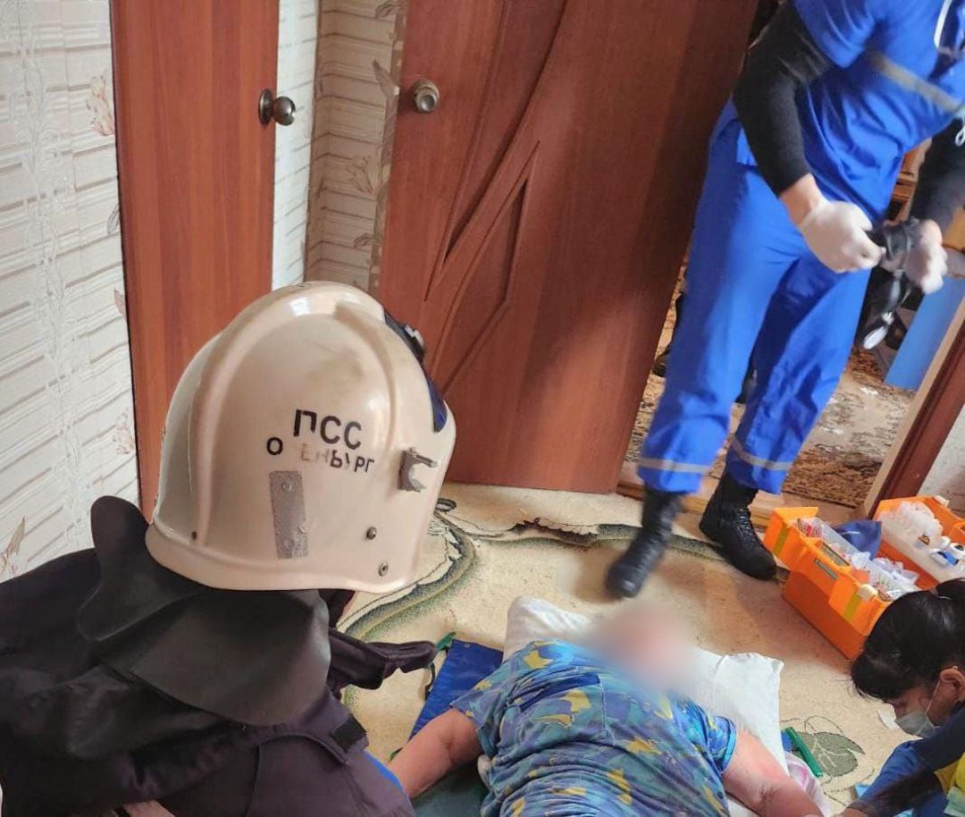 При помощи слесарного инструмента спасатели вскрыли дверь и обнаружили лежавшую на полу 70-летнюю женщину с признаками инсульта.