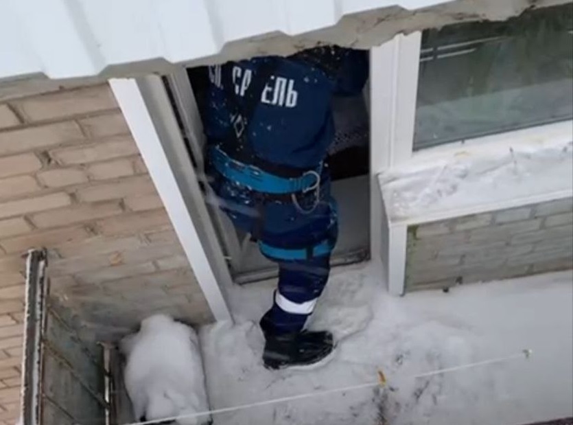 Сотрудники городской аварийно-спасательной службы незамедлительно прибыли на место происшествия. С помощью альпинистского снаряжения они спустились с пятого этажа на четвёртый и проникли в квартиру через балконную дверь.