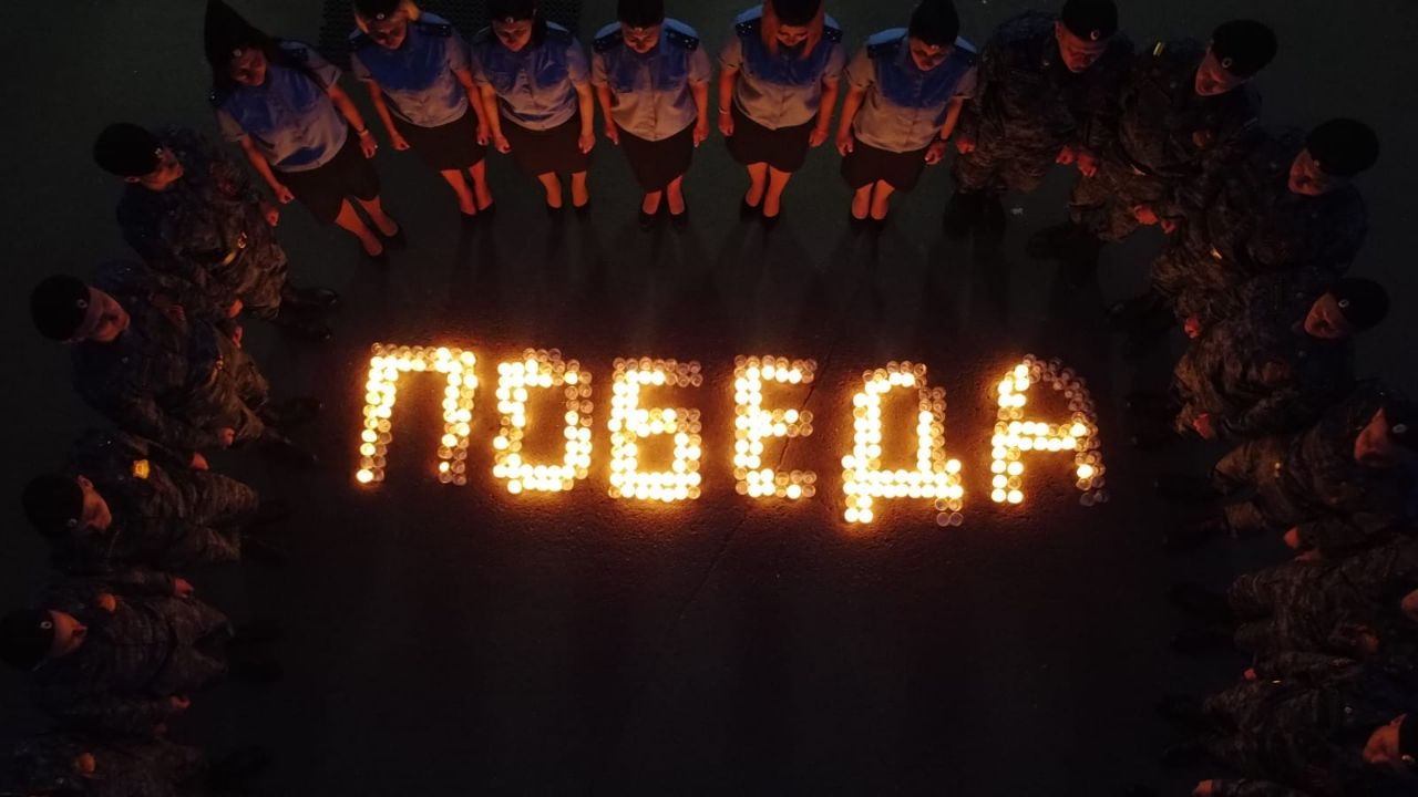 Возле здания Управления на улице Ткачева Оренбурга сотрудники службы выложили свечами слово «Победа» и почтили минутой молчания память героев Великой Отечественной войны.
