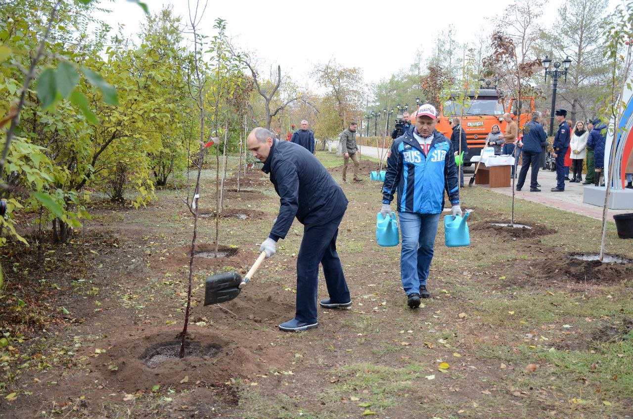 21 октября в сквере у Вечного огня на проспекте Победы в Оренбурге губернатор Денис Паслер, председатель Законодательного собрания Сергей Грачев и глава Оренбурга Сергей Салмин высадили яблони.
