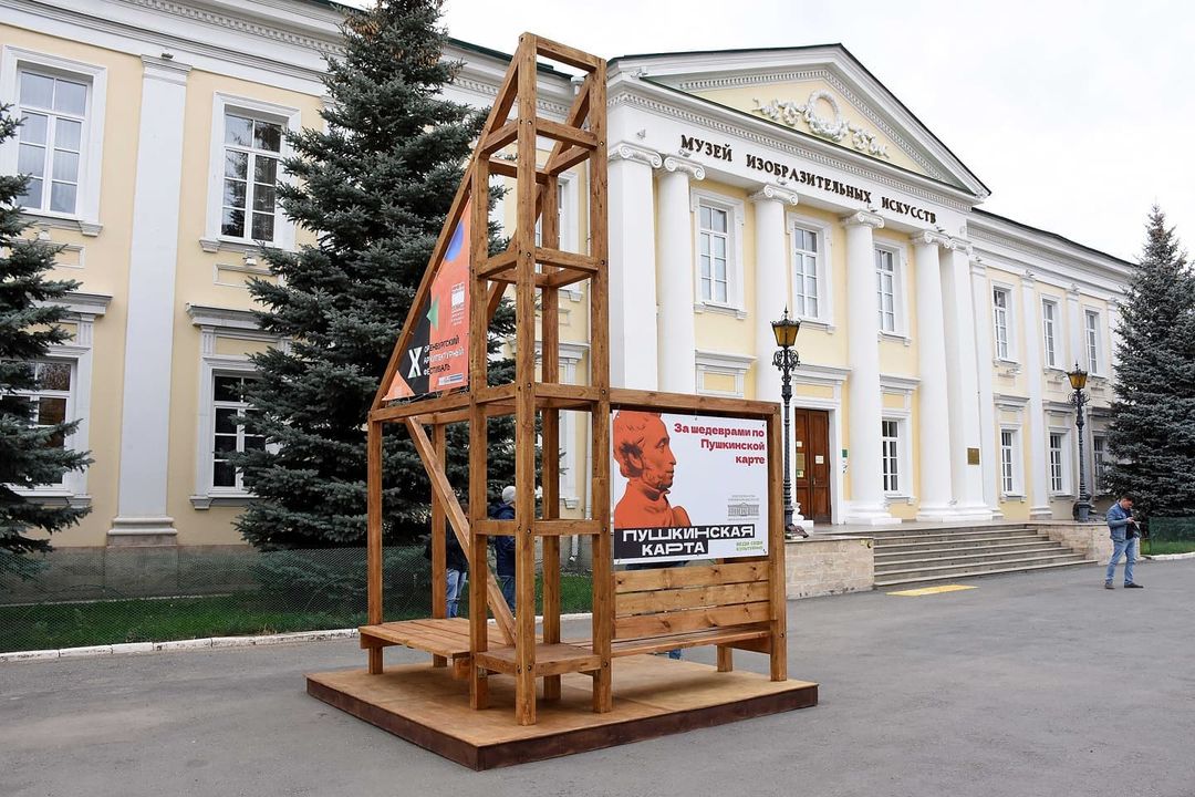 Скамья-афиша на площади у здания музея появилась по инициативе оренбургского регионального отделения «Союз архитекторов России» совместно с Оренбургским областным музеем изобразительных искусств, при участии кафедры архитектуры ОГУ, столярной мастерской «ОKSWOOD» и фонда «Регионразвитие».