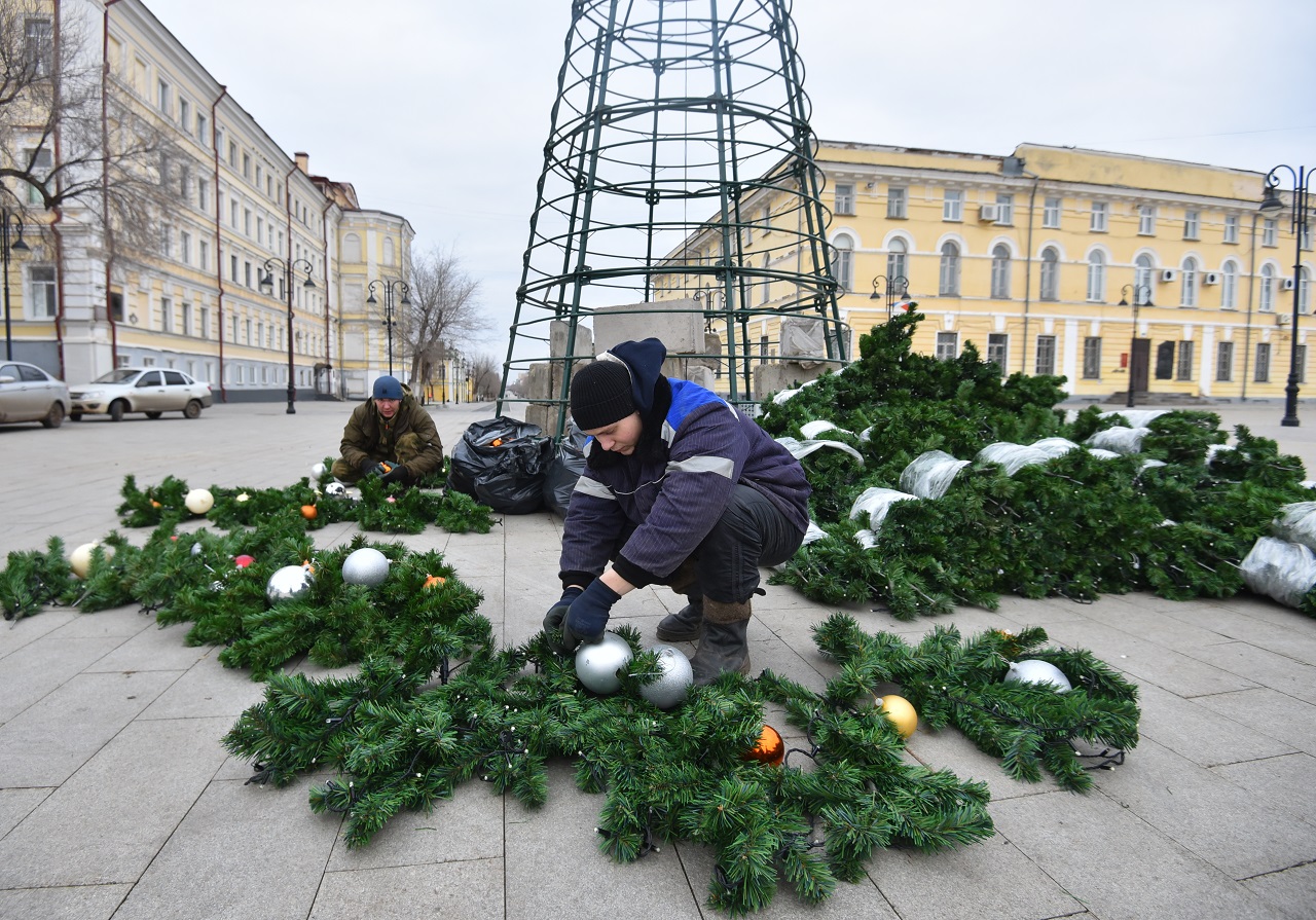 26 ноября рабочих заметили в сквере у «Китайской стены» на улице Чкалова. В микрорайоне Южный также начали собрать конструкцию главной местной ёлки. Её открытие запланировано на 25 декабря в парке «Южный». Собирают ёлку и на Беловке (на фото).