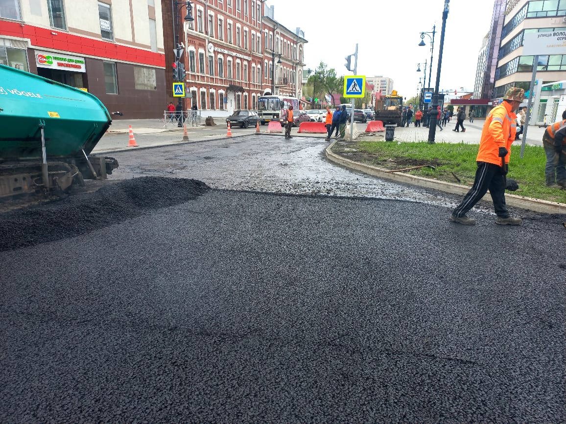 Просадка верхнего слоя дорожного покрытия на пересечении улиц Володарского и 8 Марта произошла из-за подмытия грунта ливневыми водами.