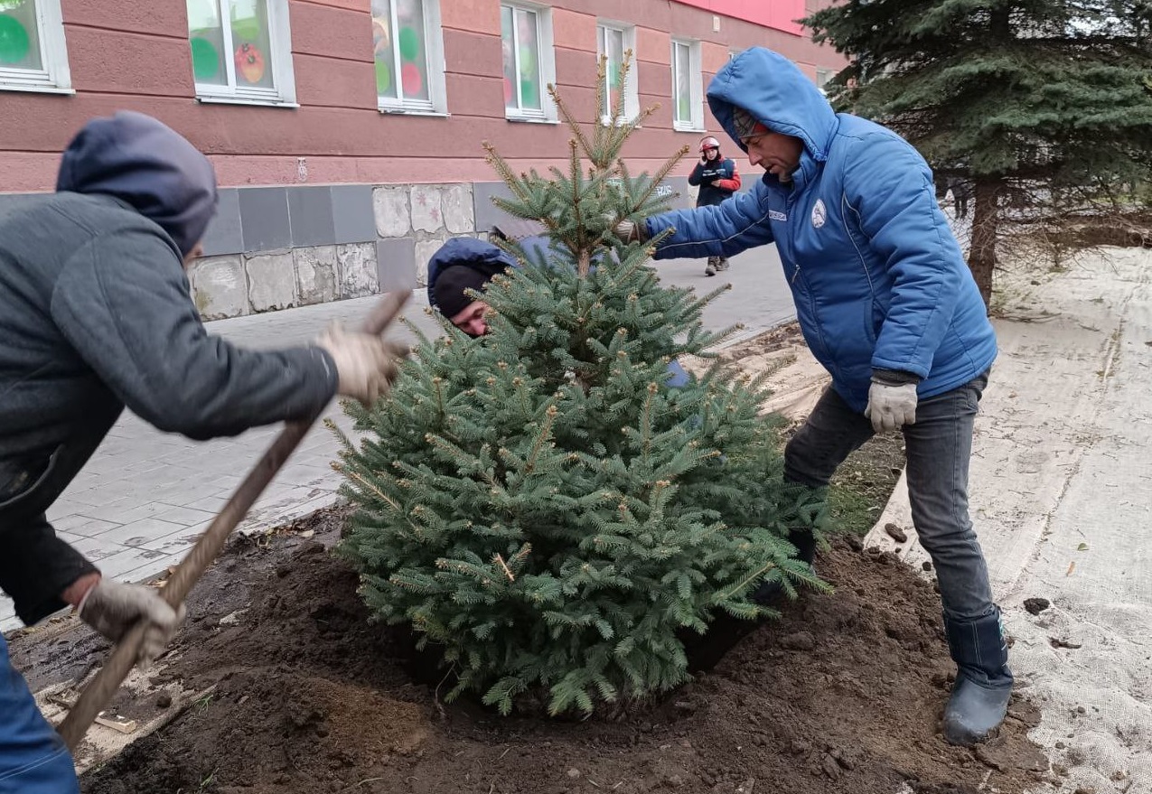 30 октября пять голубых елей заняли место в сквере, еще пять были высажены вдоль улицы Володарского.