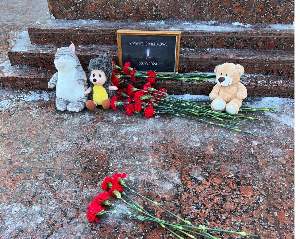 Оренбуржцы несут цветы к стеле «Ангел Мира» в память о погибших в «Крокус Сити Холле».