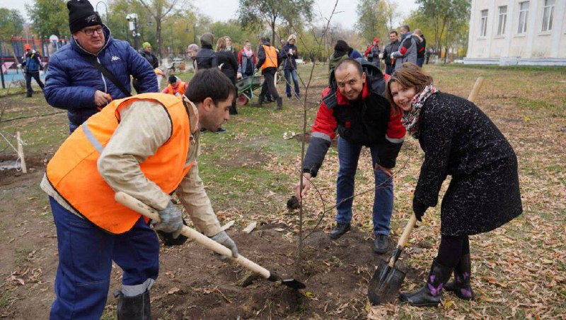 В парке у ДК «ТРЗ» Оренбурга высадили деревья и кустарники.