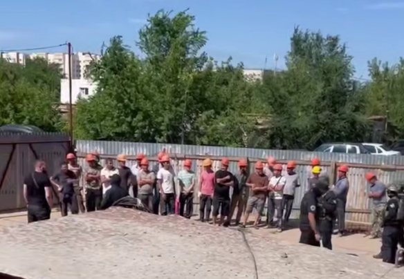 На видео, опубликованном движением «Русская община» в Telegram, около тридцати иностранцев в строительных касках идут в колонне, держа руки на плечах впереди идущих. После этого их погрузили в автомобиль и доставили в отдел полиции.