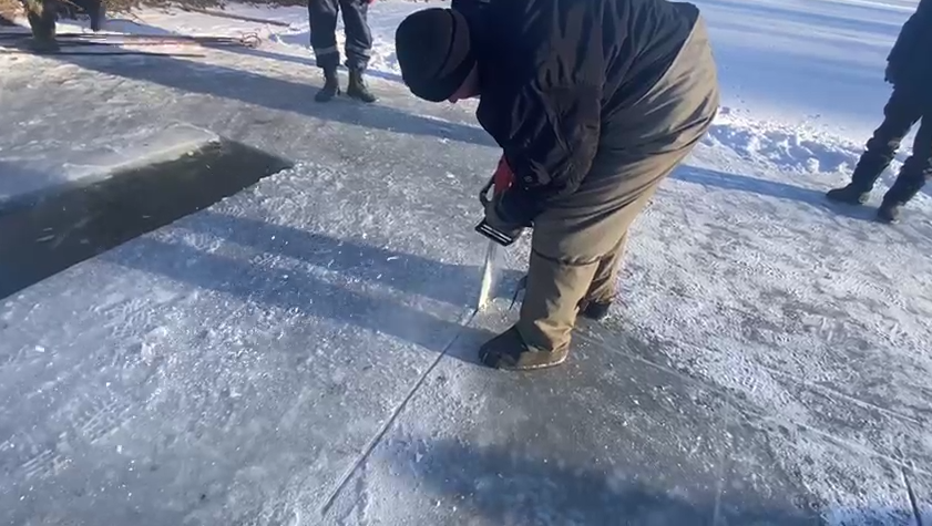 Заготовка льда идет традиционно на небольших озерах в пригороде Оренбурга. Сначала территорию расчищают от снега, размечают на равные секции. Только после этого приступают непосредственно к процессу выреза льда. Затем ледяные блоки достают багром и грузят в машины.