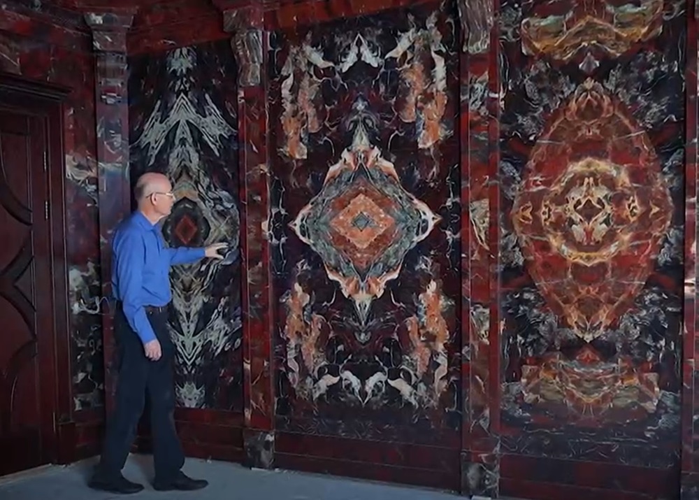 Больше года прошло от идеи Яшмовой комнаты до её воплощения. В настоящее время мастера завершают отделку, собирая вручную панно из знаменитой орской яшмы, которая применялась для отделки Храма Спаса-на-Крови в Петербурге, при создании мавзолея Ленина и станции метро «Маяковская» в Москве.