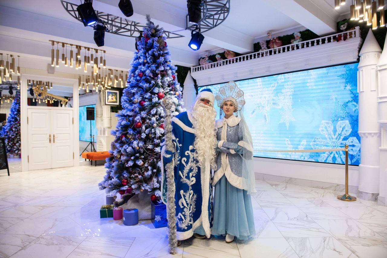 По традиции перед началом представления детей ожидает встреча с Дедом Морозом и Снегурочкой.
